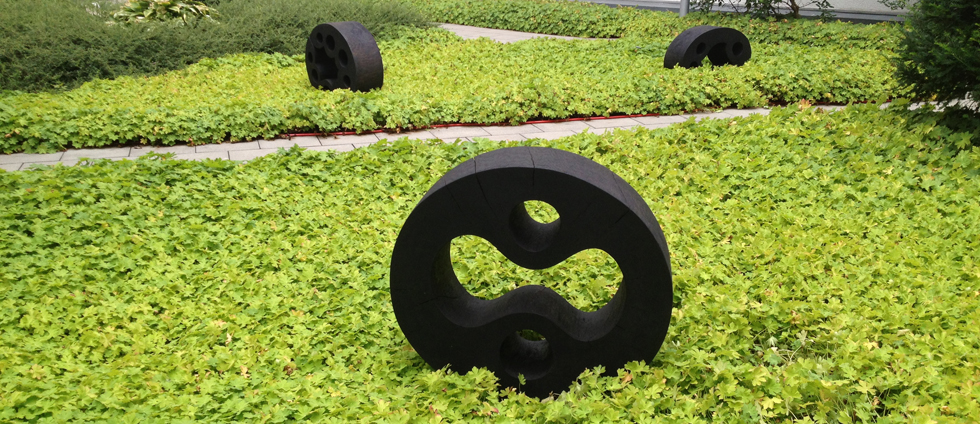 Ergänzt werden die „Formen“ in der Ausstellung durch holzschnittartige Drucke auf Bütten, die durch Verwendung kleinerer Skulpturen als Druckstöcke entstanden sind.