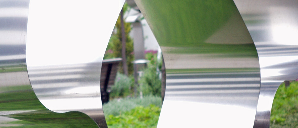 1997 entwickelt BARBARA SZÜTS für den Skulpturenpark in Baden bei Wien eine verzinkte Stahlarbeit. Die Umrisslinien einer digitalisierten Zeichnung werden das Basismaterial für die endgültige Form.